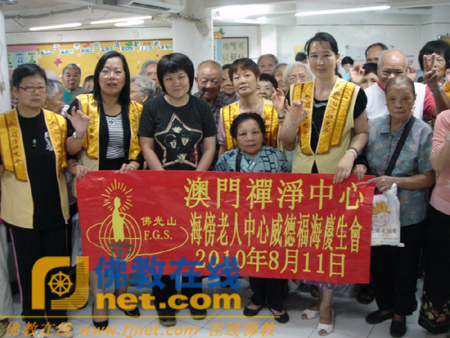 2010年8月1日下午3时,澳门禅净中心的义工一行10余人秉持“说好话、做好事、存好心”三好运动动精神在澳门佛光协会会长廖冠芝的率领下,到海傍老人中心进行主题为“威德福海-庆生会”的探访活动。