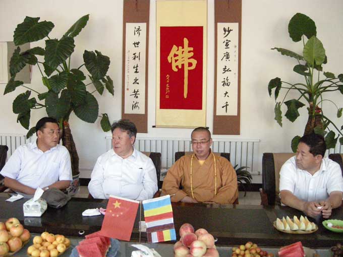 2010818日下午,全国人大民族委员会副主任哈斯巴根到宝莲寺调研,巴彦淖尔市委副书记代市长何永林、市人大主任弓占维、杭锦后旗旗长额尔敦仓等有关领导陪同调研。旗佛协会长、宝莲寺住持妙济法师到山门前热情迎接哈斯巴根一行客人,并陪同参观寺院。哈斯巴根对宝莲寺的寺院建设、宗教工作及发展理念给予了高度评价。