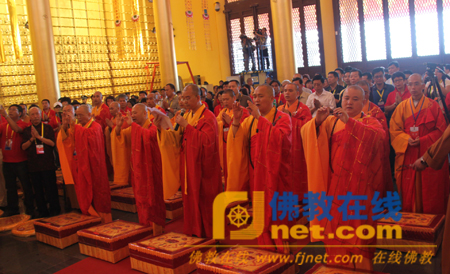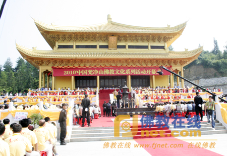 最后,陈海峰副主席宣布2010年中国梵净山佛教文化系列活动开幕。刹时,五彩礼花在空中绽放,绚烂而夺目,为此次活动增添喜庆氛围,同时也为世界最大金玉弥勒佛像开光拉开序幕。