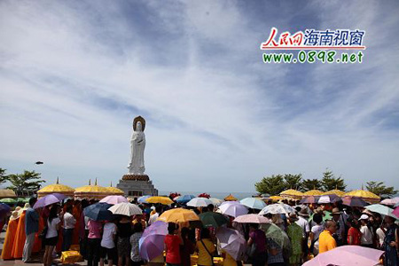 2010年7月30日,农历六月十九,佛教中观音成道纪念日,海南三亚市佛教协会会长、南山寺方丈新成法师带领全体僧众按照佛教仪轨举行一系列祈福法会,祈福世界和平、社会和谐、人民安乐。当日南山景区迎客1万余人,是进入暑期以来入园人数最多的一天。