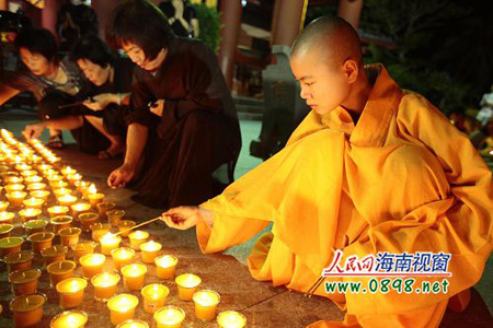 僧众和信众们在点灯