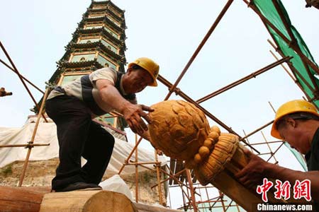 8月24日,位于北京香山公园内的宗镜大昭之庙(简称昭庙)拉开了全面修缮序幕,这是昭庙1860年、1900年两次被毁后最大规模的一次修缮工程,它的开工标志着北京地区民族文物建筑系统修缮工程正式启动。(图片来源:中新社发 富田 摄)