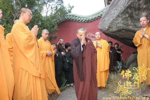 在南普陀寺闭关房,闭关九年的悟鼎法师今天早上出关。厦门佛教协会会长、南普陀寺方丈则悟大和尚主法,为悟鼎法师举行了出关仪式。