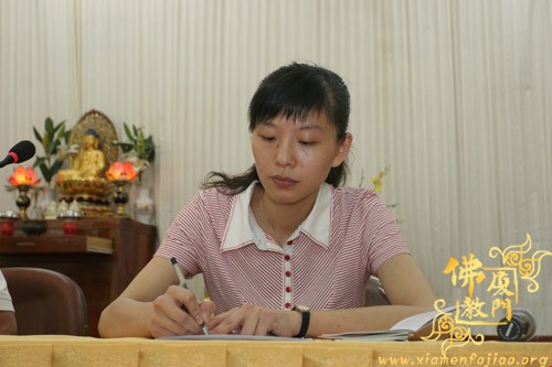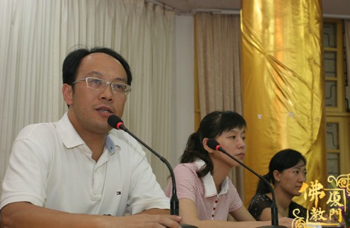 出席今天会议的有:厦门市佛教协会会长则悟大和尚,市青年联合会副主席黄鹤麟,市青年联欢会统战部部长黄芳,厦门市佛教协会秘书长净心法师,南普陀寺大知客德煌法师,南普陀寺僧值常明法师,台办联络处科长郑婉宜,春晖旅行社总经理杨文颖及禅文化体验营厦门营员和组委会工作人员等。