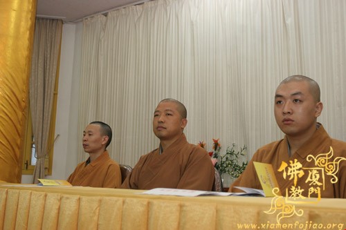 南普陀寺大知客德煌法师、厦门佛教协会秘书长净心法师、南普陀寺僧值常明法师