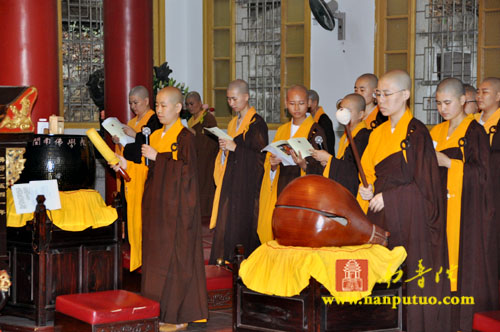 南普陀寺首座慧然法师、紫竹林寺副寺悟源法师领众分别于两寺恭诵《佛说盂兰盆经》。庄严的殿宇内,安百味五果等于盂兰盆中,以供养十方自恣僧。四众弟子虔诚恭敬地在佛前礼拜诵经,上盂兰盆供。愿藉供佛斋僧普度的功德力,期令累劫父母、冤亲,同沾法益,以报夙世父母的养育之恩,尽佛子之孝道。祈愿累世父母得以超脱轮回之苦,早登觉岸,并回向所有与会者业障消除,福慧增长,国泰民安。