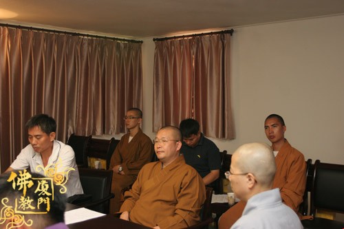 8月2日上午10时30分许,厦门市佛教协会会议室召开“首届海峡两岸青年禅文化体验营”筹备会,台湾台北市佛教会理事长明光大和尚,金门县佛教会理事长性海大和尚,厦门市青年联合会统战部部长黄芳,市民宗局一处沈仲勇副调研员,厦门市佛教协会会长则悟大和尚、常务副会长定恒法师、驻会副会长法云法师、秘书长净心法师、副秘书长能元法师,南普陀寺维那兼知客圆满法师以及市佛协、旅行社等相关办公人员参加了此次会议。会议由则悟大和尚主持。