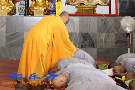 2010年7月29日,黑龙江省哈尔滨市极乐寺举行的首期短期出家培训班圆满结束。此次短期出家培训班于23日举行,数十位居士参加。
