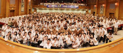 2010年8月10日晚,“2010年国际生命学习营”课程最后一天举办综合座谈会,青年学子就“佛教有奇迹吗?”“为什么只有念阿弥陀佛的人才能够往生西方极乐净土?”……等问题向佛光山开山宗长星云大师请益,星云大师一秉对佛教青年的爱护之心,钜细靡遗的一一解答,妙语如珠,笑声回荡在佛光山如来殿大会堂。
