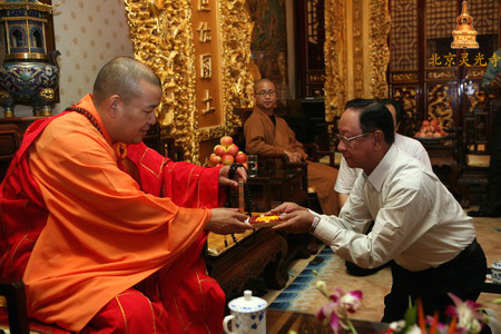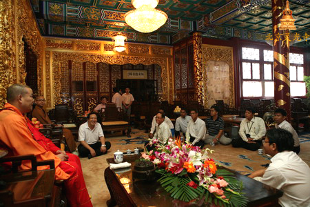 2010年8月24日上午,以缅甸建设部副部长U Tint Swe为团长的访华团一行拜访北京灵光寺,受到灵光寺方丈常藏法师的热情接待。