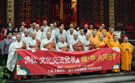 2010年9月1日下午,由韩国全罗道佛教界为主体的韩国丽水世博会佛教委员会上海世博参访团一行40余人到上海玉佛禅寺参观。