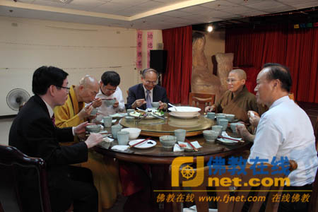 万福禅寺住持明空法师、妙泉寺住持修懿法师陪同王局长用餐