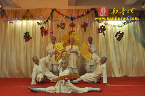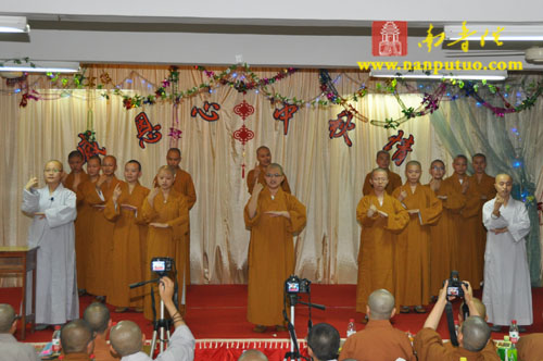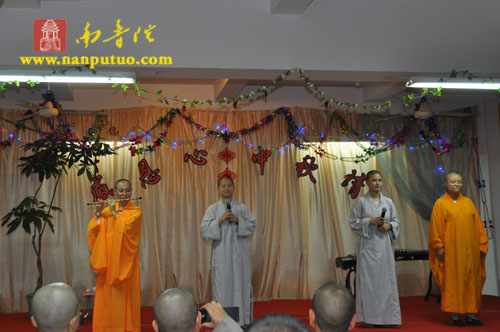 晚会由常觉、强宇、心禅、传意四位同学共同主持。经过一番精心编排的《赞法师》、《吉祥六宝》、《一轮明月照禅心》、《扇舞丹青》、《轻歌问道》等即诙谐幽默,又富有深意的文艺节目,在同学们出色的表演下,使得感恩报恩之心展现的淋漓尽致。整台晚会持续近两个小时,可谓是睿智与慧光的完美演绎。