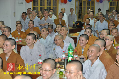“明月当空照,万物映禅心”,晚会在悠扬的梵乐声中拉开帷幕。闽院副院长法源法师、办公室副主任悟源法师、副教导长超波法师等诸位法师到场观看了由学僧自编自导自演的精彩文艺节目。