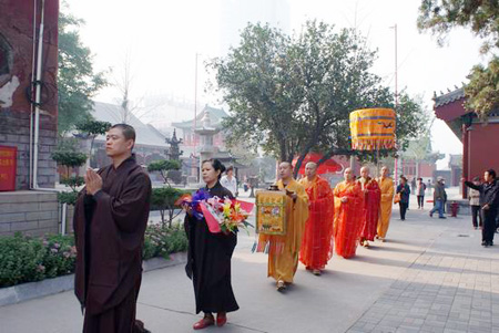 2010年9月26日(农历八月十九日)上午8时30分,天津大悲禅院隆重举行传授在家居士五戒、菩萨戒法会。