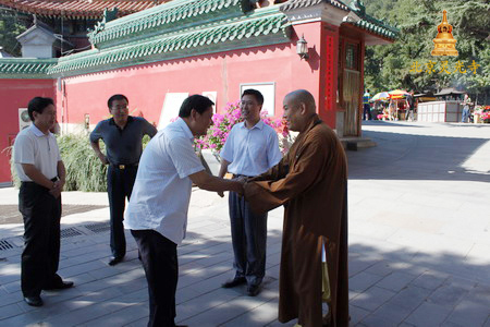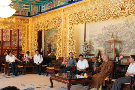 2010年9月10日上午10点,中央党校“宗教工作专题研讨班”一行30余人在国家宗教事务局人事司俞滨副司长、卢婧处长的陪同下到北京市灵光寺考察,受到灵光寺方丈常藏法师的热情接待。