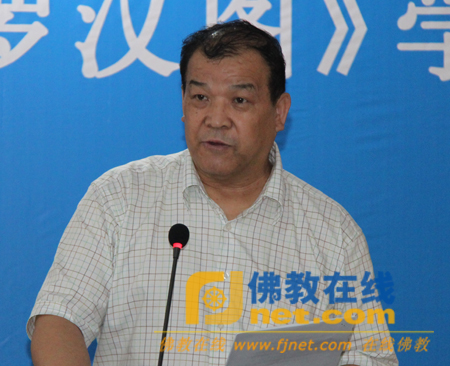 张伟副主席说,陕西是佛教的第二故乡,佛教文化历史源远流长,在国内乃至世界都有很大的影响。在中国历史上汉传佛教形成了八大宗派,其中有六大宗派起源或创立于长安,挖掘、整理这些佛教文化资源,不仅有利于发挥佛教文化在构建和谐社会中的作用,维护社会稳定,而且对促进陕西经济、文化、社会全面发展也会产生重要的影响。罗汉文化是根据玄奘诠释《法住记》在我国逐步形成的,研究罗汉文化就很自然的使我们想到玄奘和玄奘精神。鲁迅称“玄奘精神是民族脊梁”,值得我们学习和继承。我们今天弘扬玄奘精神,就是要学习他那种为了理想和事业历尽千难万险、百折不挠、舍身求法的献身精神,那种孜孜不倦、执着求知的学习精神,那种真诚向外国学习、勇于开拓的精神,那种不慕荣立、心归大唐、造福人民的爱国主义和国际主义精神,那种坚持不懈、寻求真理、攀登学术高峰的精神,那种虚心吸收不同宗派之所长的宽容精神,这些是当前我国改革开放和西部大开发所需要大力提倡的精神。罗汉文化是佛教文化的一部分,而佛教文化又是我国传统文化的一部分,只要陕西省佛教界和学术界有决心就一定能深化佛教文化研究工作,重铸陕西佛教历史的辉煌。最后,张伟副主席祝愿研讨会圆满成功,全体与会法师、专家学者身体健康。
