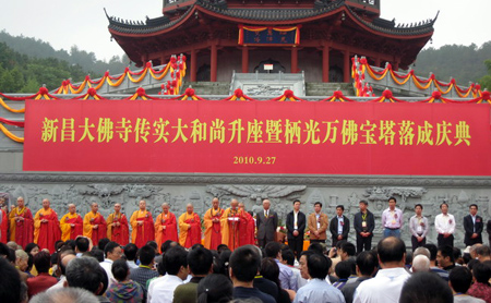 2010年9月27日上午,浙江省新昌县大佛寺举行传实法师方丈升座暨栖光万佛宝塔落成庆典。