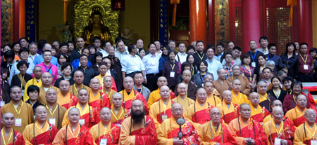 全国政协常委邵奇惠,国家宗教事务局一司佛教处处长匡胜,浙江省委统战部部长汤黎路,省委统战部副部长、省民宗委主任王毅,省民宗委巡视员邢越生,绍兴市委统战部部长倪善贵,市委统战部副部长、市民宗局局长滕建华,县领导梁富铨、王学洪、徐玉红、韩岳才、潘启富、袁国飞,及中国佛教协会副秘书长、北京灵光寺方丈常藏法师,中国佛教协会副秘书长、福建福州鼓山涌泉寺方丈普法法师,中佛协咨议委员会副主席、江苏省佛协副会长、天宁禅寺方丈松纯长老,浙江省佛教协会副会长、天台山国清寺监院允观法师,浙江省佛教协会秘书长徐明仁,浙江省佛教协会办公室主任性一法师,杭州市佛教协会会长光泉法师,宁波市佛教协会副会长、七塔寺方丈可祥法师,宁波市佛教协会副会长、阿育王寺方丈界源法师,温州市佛教协会会长、江心寺方丈智明法师,嘉兴市佛教协会会长、香海禅寺住持贤崇法师,绍兴市佛教协会会长、炉峰禅寺方丈净芳法师,安吉灵峰寺方丈慈满法师等领导、诸山长老、十方信众多达1500多人出席庆典仪式。