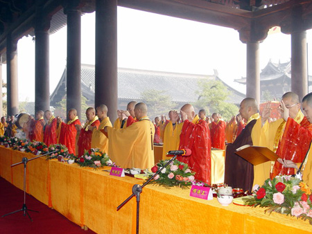 庆典结束后,大同市佛教协会遵照宗教仪轨,在华严寺普光明殿前举行了华严寺开光法会。