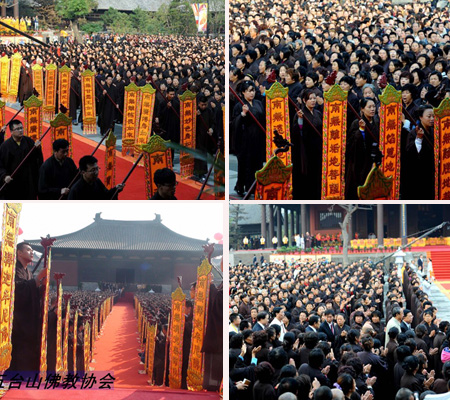 华灯祥照,果成金秋,五寺一宫,盛世重光。2010年9月25日上午8时,山西大同“五寺一宫”修复重光庆典在华严寺广场举行。