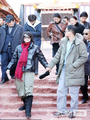 2010年9月25日北京讯 王菲、李亚鹏夫妇早前前往西藏旅行的照片曝光。王菲李亚鹏抵达西藏当天,到一个艺术馆内的高级餐厅吃饭,获赠哈达,席间有人用传统乐器伴奏,充满民族氛围,受到的礼遇非常高,王菲心情非常好露出灿烂笑容,当晚夜游大昭寺,虔诚拜佛,上台阶李亚鹏牵着王菲的胳膊,恩爱互助,抵达西藏第二天菲鹏参观布达拉宫,亲密牵手,王菲挽着李亚鹏胳膊小鸟依人,合影时李亚鹏拦着王菲,夫妻尽显恩爱,破离婚传言。 王菲童心大发,一直拿着相机拍不停,还低调站在柱子后面拍前来布达拉宫顶礼膜拜的人,夫妻俩开心甜蜜。