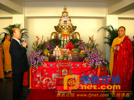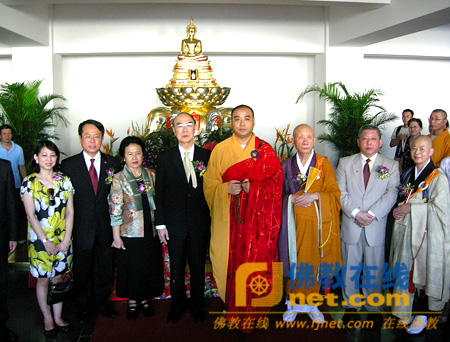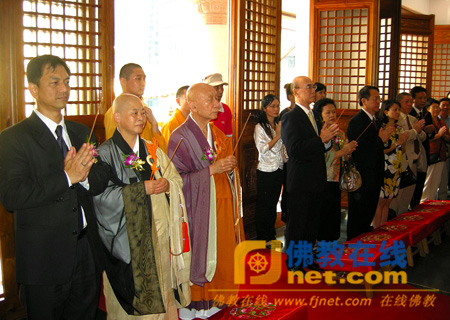 日本妙心寺灵云院住持则竹秀南长老在致词中特意赋诗一首:安奉释迦牟尼佛,太平宏业此圆成,静安古刹瑞云起,中泰日交流友情。