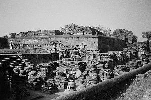 历史上,那烂陀曾3度被毁。今天,在距离比哈尔邦首府帕特纳90公里的那烂陀大学旧址上,人们依旧可以看到这所古代著名学府被毁后留下的红砖建筑残骸和一些大理石雕塑。