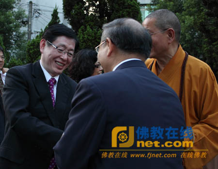 国家宗教局局长王作安和台湾中华居士会理事长陈声汉亲切握手