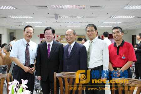国家宗教局局长王作安、台湾中华居士会荣誉理事长黄书玮、理事长陈声汉、秘书长王艾、副秘书长丁志勇合影