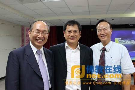 国家宗教局办公室主任陈红星、台湾中华居士会荣誉理事长黄书玮、理事长陈声汉合影