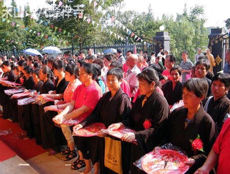 江西讯 2010年9月16日(农历八月初九),江西末山九峰禅寺隆重举行了观音殿竣工上梁典礼。江西省佛教协会副会长、慈化寺方丈妙安法师,江西省佛协副会长、明月山显应寺住持圣愿法师,江西省佛协咨议委员会副主任、江西尼众佛学院院长、大金山寺住持印空长老尼,云门寺明钦法师,宜春市佛教协会教务部副主任谢绍煌等出席了此次活动。