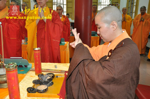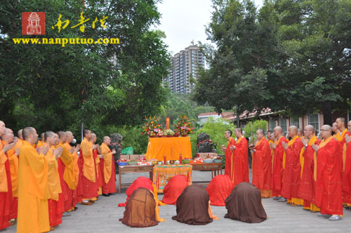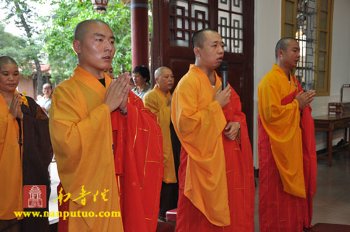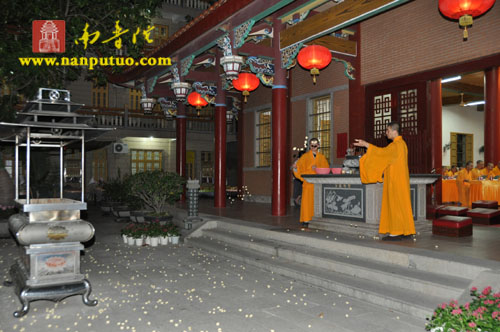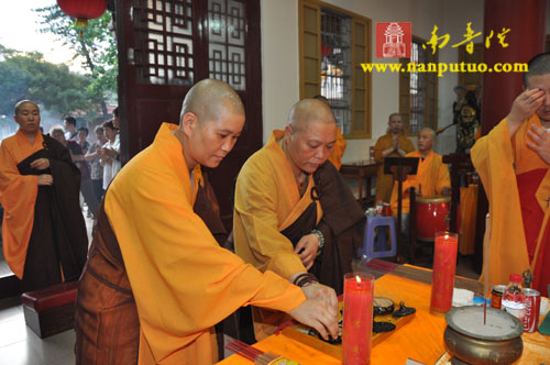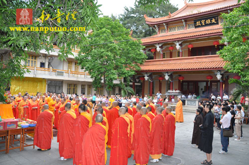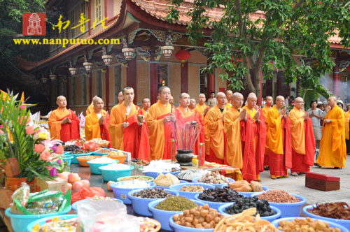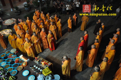 2010年9月4日,值秋季开学之际,闽南佛学院女众部隆重举行了一年一度的瑜伽焰口法会。下午5时许,南普陀寺及闽院男众部六十余位法师在南普陀寺知客演慧法师、本四班主任法仪法师的带领下,来到闽院女众部所在地——厦门紫竹林寺,于大雄宝殿内施放瑜伽焰口一堂。