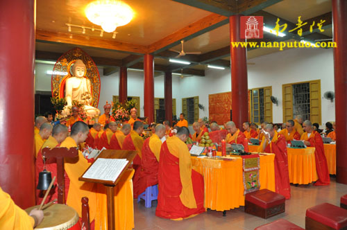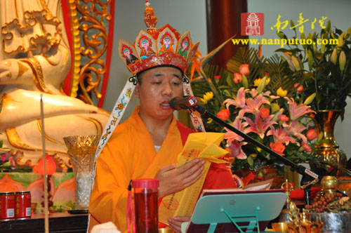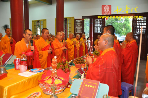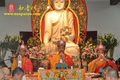 法会礼请本藏法师等三大士主法,闽院副院长法源法师(紫竹林寺监院)、办公室副主任悟源法师(副寺)和副教导长超波法师(副寺)在佛前代众沐手焚香、虔诚礼拜,祈愿世界和平,风调雨顺,人民安乐,灾疫永离;祷祝本寺界内乃至十方法界之一切众生现在者消灾延寿,过去者往生净土。