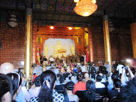 星云大师赞许东北人对佛教的信仰纯净、真诚,鼓励大家还要以“智目行足”为修行方向。星云大师说,佛教重在教义,行在修持,如果只重修持,好像只有一只手;“智慧像眼睛,修行像两足”,除了念佛,也要开启般若智慧,就像禅门要提起疑情,所谓“大疑大悟、小疑小悟、不疑不悟”,解是很重要的。