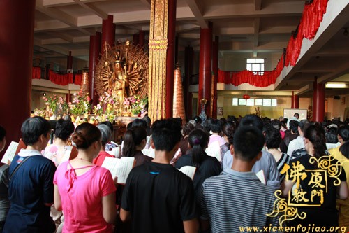 在地藏王菩萨圣诞(农历七月二十九)即将到来之际,厦门观音寺于9月4日——9月5日(农历二十六至二十七)隆重启建 “两岸祈福超荐法会”,法会内容包括礼拜净土忏、礼拜大悲忏、大蒙山施食、佛法开示等。礼请台湾镇国寺住持广心长老主法,两岸四众弟子共同参加。