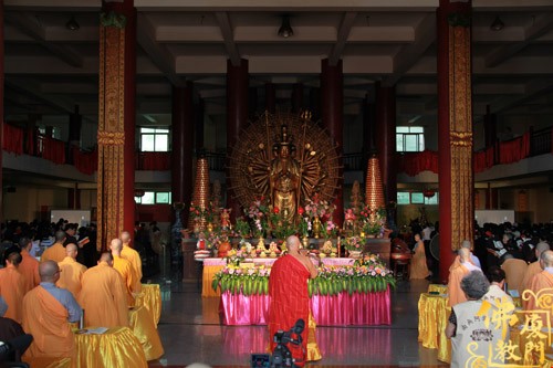 今天上午8点30分,仪仗队香花迎请台湾镇国寺住持广心长老,厦门市佛教协会常务副会长、观音寺住持定恒法师到观音寺万佛塔一楼为“两岸祈福超荐法会”主法。两岸四众弟子拜净土忏,同祈国泰民安、风调雨顺、无灾无难、人民安乐;广大信众增福增慧,吉祥平安;历代先亡离苦得乐往生净土。