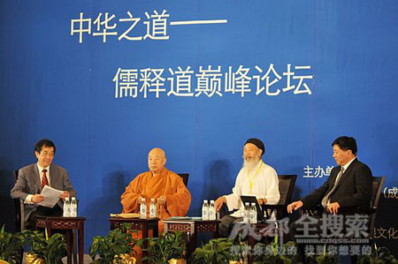 2010年9月18日下午,“中华之道——儒释道巅峰论坛”在四川都江堰举行。论坛由中央社会主义学院党组书记、常务副院长叶小文主持,中国道教协会会长任法融、中国佛教协会会长传印长老和著名儒学思想家、长江人文委员会主席杜维明以弘扬中国传统文化为核心,论道青城。