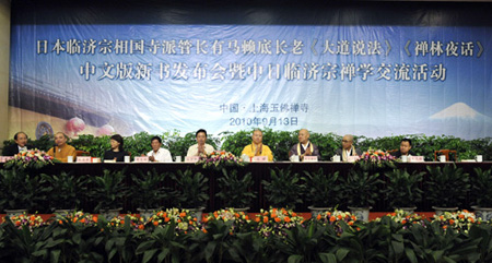 2010年9月13日下午,日本临济宗相国寺派馆长有马赖底长老中文版新书《大道说法》和《禅林夜话》发布会在上海玉佛禅寺觉群楼多功能厅举行。上海市民宗委、市佛教协会、区民宗办的领导,玉佛寺的护法居士以及远道而来的日本相国寺派访沪代表团成员共约400余人参加了发布仪式。