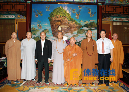中佛协教务部宏度主任、中佛协办公室刘宇主任、中佛协寺庙管理办公室清远主任、中佛协综合研究室明杰主任、中佛协专委办性妙副主任,中佛协国际部李贺敏副主任、王立副主任等陪同会见。