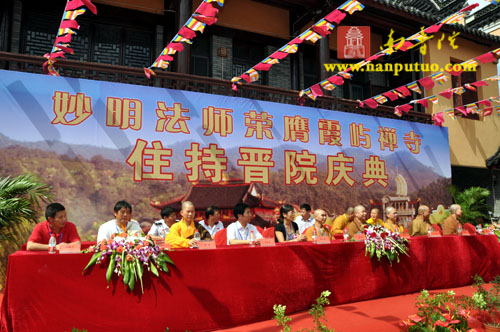 2010年9月20日,浙江省宁波市小普陀霞屿禅寺隆重举行了妙明法师荣膺住持晋院庆典。出席庆典的有:浙江省宁波市佛教协会会长、天童寺方丈诚信大和尚,福建省厦门市佛教协会会长、南普陀寺方丈则悟大和尚,厦门市佛教协会副会长、闽南佛学院副院长法源法师,厦门市佛教协会秘书长、闽院院长助理兼办公室主任净心法师,宁波市佛教协会副会长兼秘书长、七塔寺方丈可祥大和尚,宁波市佛教协会副会长、阿育王寺方丈界源大和尚,霞屿禅寺原住持了觉法师,金鹅禅寺监院慧明法师等诸山长老大德法师。浙江省宁波市宗教局局长耿建光、一处章洪光处长,东钱湖管委会社管局局长张高华等省市领导亦应邀出席。同时,闽南佛学院教导长达源法师、副教务长中观法师、办公室副主任界淞法师、教务主任静安法师、副教导长超波法师以及闽院历届校友也纷纷前来随喜祝贺。