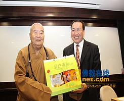 增勤法师向星云大师敬赠礼品