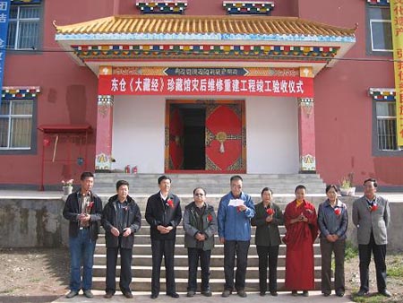 2010年9月1日,青海玉树东仓《大藏经》珍藏馆灾后维修重建工程在青海玉树结古镇竣工验收,拥有千年历史的玉树东仓《大藏经》,和它的保护者东仓家族的后裔一起搬入了这所新居。玉树东仓《大藏经》珍藏馆占地456平方米,2009年由政府出资建成。