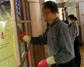 苏澳镇中山路一段水淹一层楼高,建生医院灾情惨重,病患移往二楼安置。医院一楼是门诊区与检验区,层层厚重的淤泥裹住精密的医疗器材,志工3或4人一组,各自负责一间房间,用畚箕一铲一铲的倒出泥水,志工或蹲或跪拿著抹布仔细擦拭可用的小物品,执行长林俊龙拿著高速加压的水枪,提升清扫效率。“哇!终于看清楚地板的颜色了耶。”在众人合心协力下,愈做愈有信心。林俊龙说:“这是殊胜的因缘,大家都做得很欢喜。”经过一天的清理,建生医院内部恢复昔日清洁。(图:简东源、陈怡君,文:陈怡君、刘星妤)