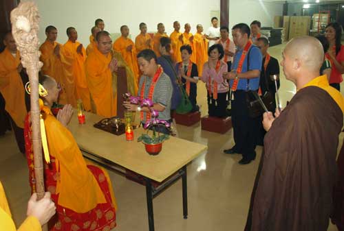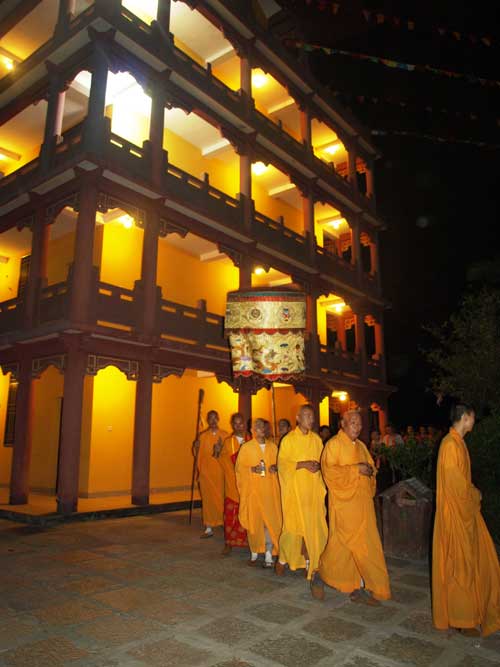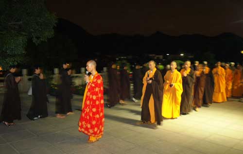 2010年9月30日(农历八月廿三)晚18时整,厦门市海沧灵鹫山下药师佛古道场石室禅院内钟鼓齐鸣,四众善信列队诵佛圣号齐步于弥勒堂内,恭请本寺住持上忠下明大和尚至大雄宝殿,隆重主持“七七昼夜精进祈福消灾药师佛七”大法会。