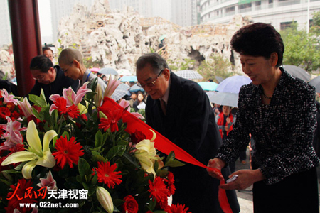 河北区相关单位领导与宗教人士一起为李叔同像敬献花篮