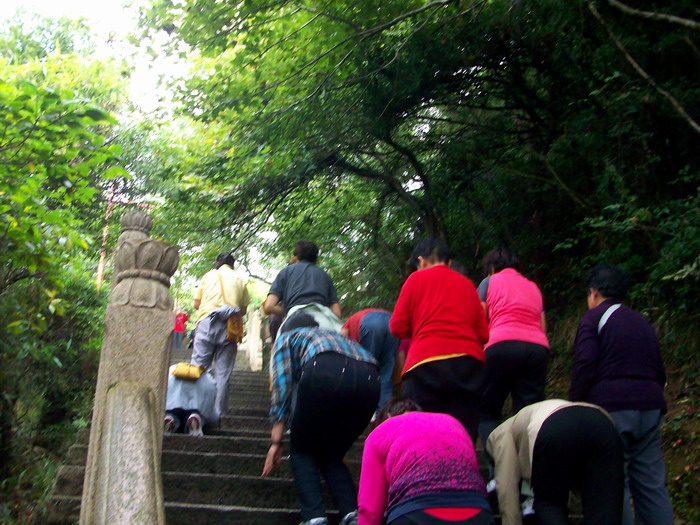 下山的路上遇见一群由一位法师带队虔心拜佛上山的香客,1087级石阶啊,随喜赞叹!南无大慈大悲广大灵感观世音菩萨!