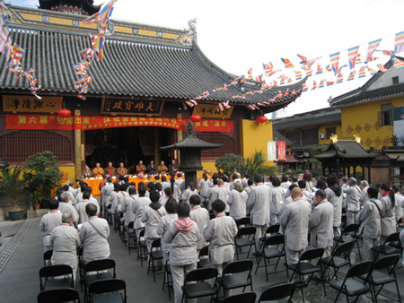 2010年10月27日上午8点30分许,上海市松江区西林禅寺第六届短期出家体验营正式开营,150多位营员穿戴整齐、精神饱满欢聚在大雄宝殿广场。上海市佛教协会办公室金易铭主任,龙华寺堂主世炫法师,上海书法家协会会员刘兆麟先生、袁继先先生,区佛协副会长、福田净寺监院明非法师,区佛协副会长、大方禅院监院能慧法师,区佛协副秘书长、资庆寺监院能慈法师等出席了开营仪式。