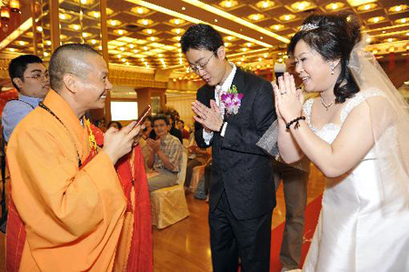 佛光山台北道场举行佛化婚礼 新人欢喜接受佛光人祝福