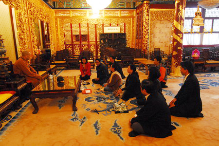 2010年10月22日上午,缅甸国家和平与发展委员会秘书长夫人在缅甸驻华大使吴登伦的陪同下参拜北京灵光寺佛牙舍利。